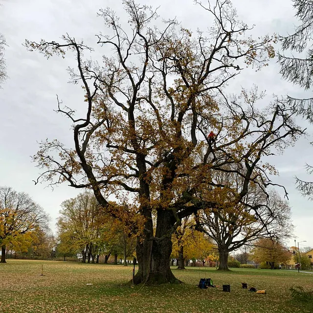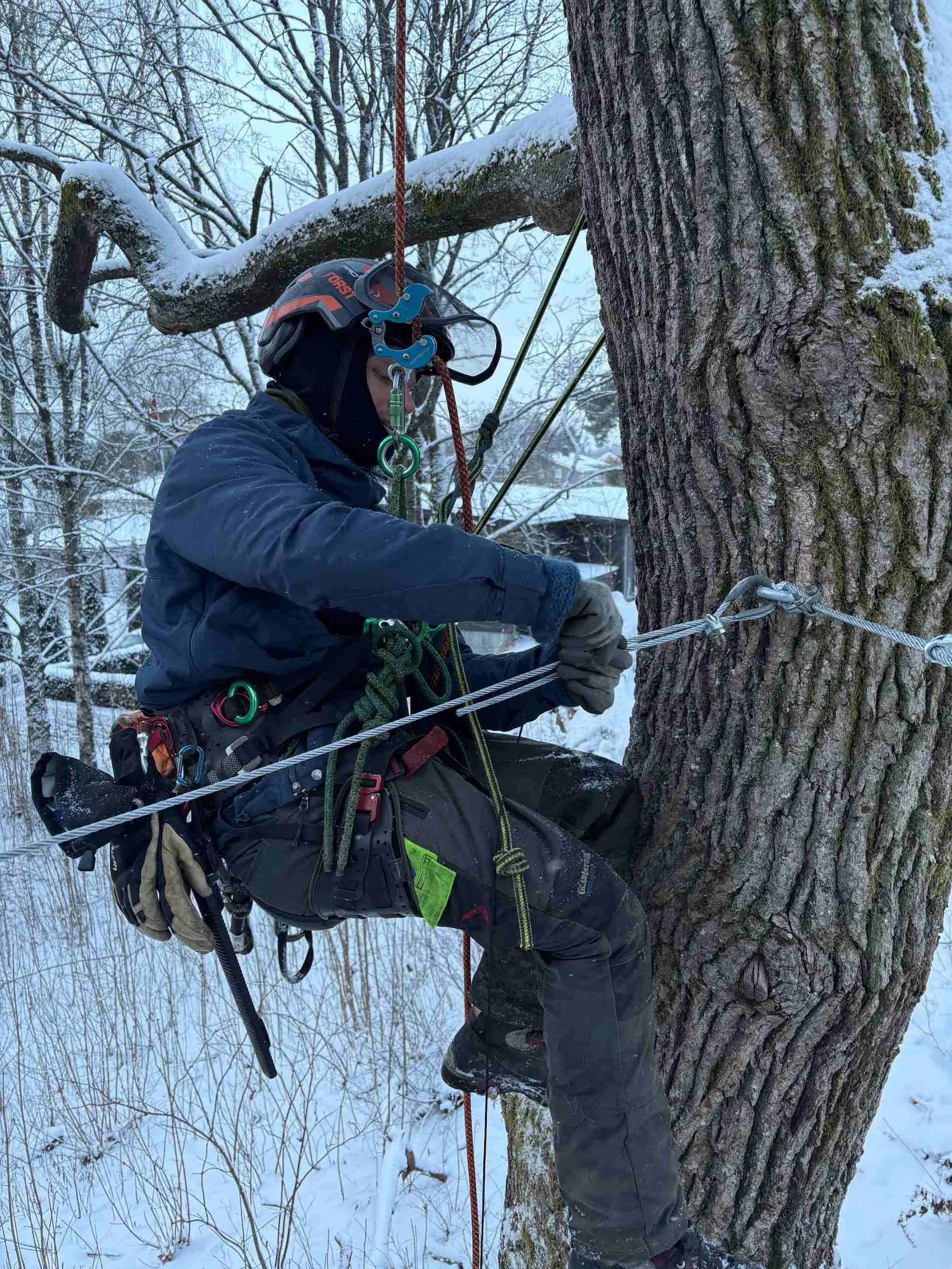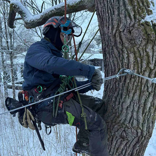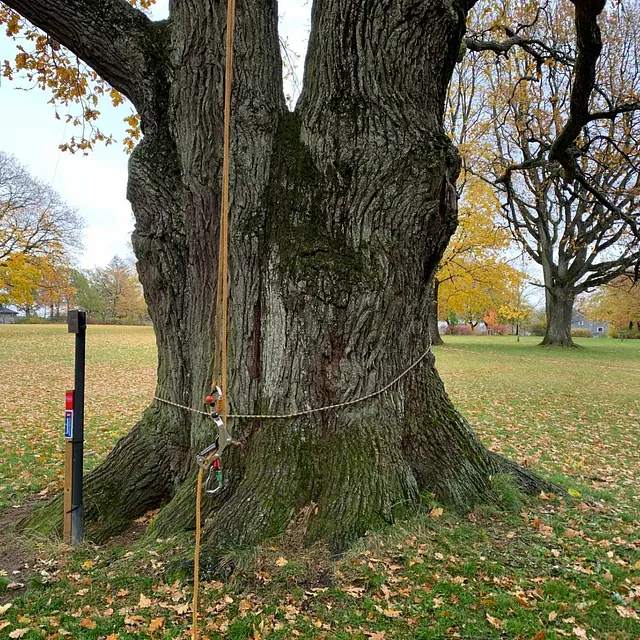 Vi monterer sikringer i trekronen for å støtte og avlaste trær som er svekket. Dette reduserer risikoen for at greiner knekker, forlenger treets levetid og sørger for trygghet, samtidig som treet fortsatt kan bevege seg naturlig i vind og vær.