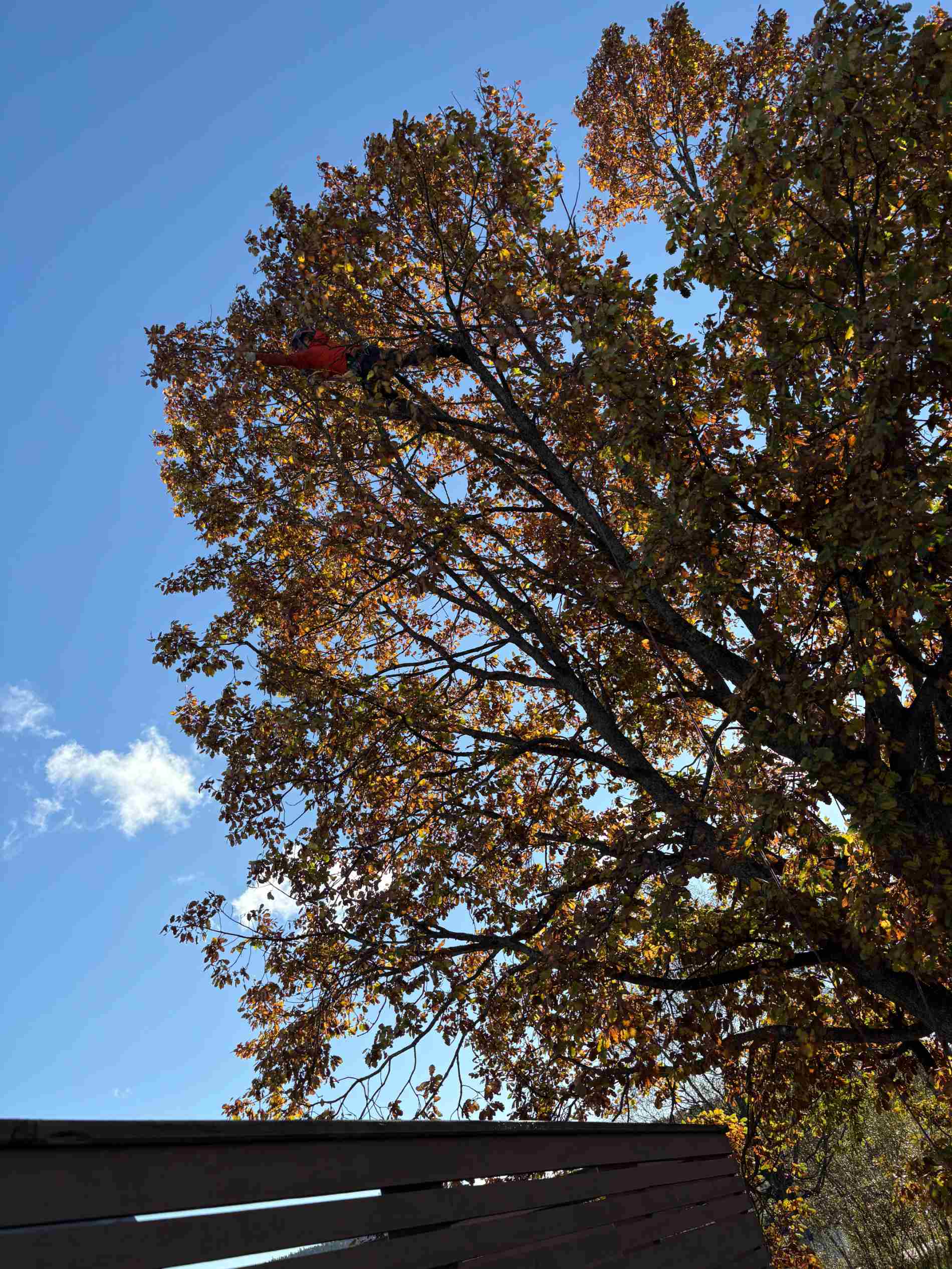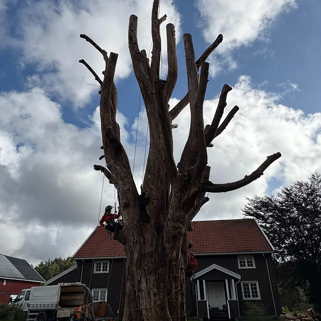Vi har spesialkompetanse på seksjonsfelling og trygg nedrigging av store og krevende trær – uansett plassering og omgivelser.